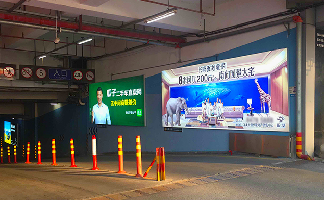 點擊番禺萬達廣場停車場卡布燈箱解決方案